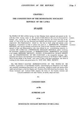 හයෙන්-පහක බලයක් සහිතව එක්සත් ජාතික පක්ෂය (එජාප) 1977 ජූලි මසදී බලයට පත්වූ විට, 1972 ආණ්ඩුක්රම ව්යවස්ථාවට දෙවන සංශෝධනය 1977 ඔක්තොම්බර් 4 දිනදී සම්මත කර ගන්නා ලද්දේ විධායක ජනාධිපති ධූරයක් පිහිටුවීමට වන අතර, එය යටතේ (එකල අග්රාමාත්යවරයා) ජේ. ආර්. ජයවර්ධන 1978 පෙබරවාරි 4 දිනදී පළමු විධායක ජනාධිපතිවරයා බවට පත් විය. 1977 මහා මැතිවරණයට පෙර එජාප විසින් නව ආණ්ඩුක්රම ව්යවස්ථාවක් ගෙන ඒම සඳහා මහජන වරමක් පැතීය. ඒ අනුව තේරීම් කමිටුවක් පත් කෙරුණේ පවත්නා ව්යවස්ථාව සංශෝධනය කල හැකි අයුරු විමසා බැලීමටය.